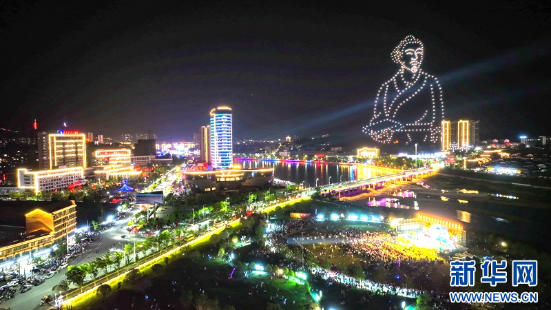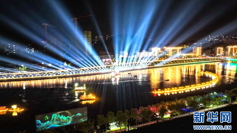 图为湖北英山县城以城中河“一河两岸”为主轴打造的夜游项目。 新华网发