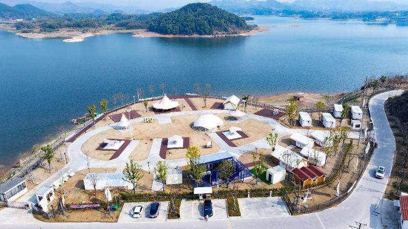 “以前这里是灌木丛生的荒地,如今变成了网红打卡露营地。”营地负责人王群介绍,“营地周边,横岗山森林公园、梅川水库水利风景区等景点星罗棋布。游客们可以在营地烧烤、品茗,也可以徒步登山、环湖骑行,感受大自然的宁静与壮美。”