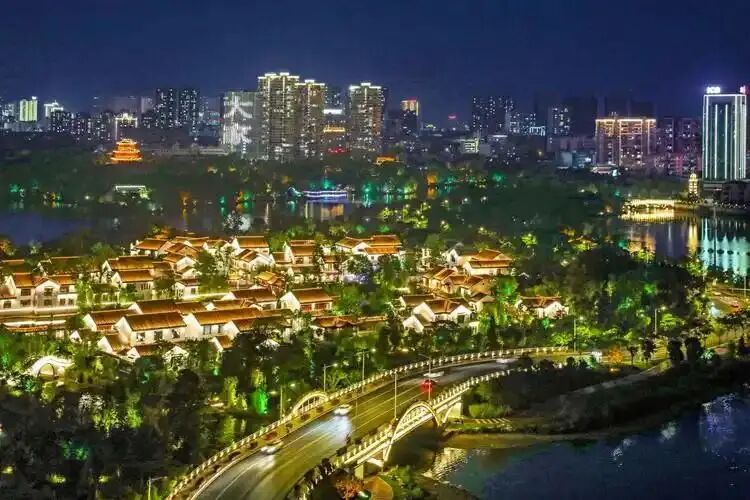 当暮色染红湖面,遗爱湖便披上了璀璨的星光霓裳。