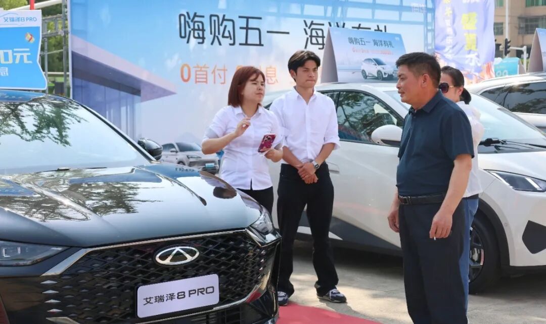 “我们在行业内率先承诺,全系整车+三电终身质保。”奇瑞风云市场部经理赵琼忙得满头大汗,“政府搭台、企业让利,虽然天气热,但客流量还是不少,一上午就有20多批人次前来咨询,有七八人都表达了购买意向,其中风云T9,风云A8L这两款最受青睐。”