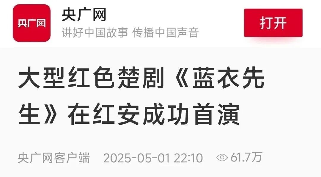 文旅场景在拓展,业态不断创新,文旅宣传外延同步在拓展。新华网重点报道《蓝衣先生》《听长胜说》带来的红色艺术盛宴,中央电视台跟进报道红安影视城沉浸式小剧迎来游客打卡体验,央视网推出五一“农文商旅体”融合释放多彩活力新玩法综述报道,央媒叠加报道让红安红色文化焕发青春魅力。