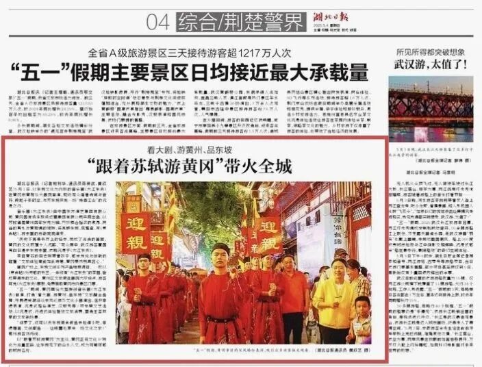 全市各县(市、区)以东坡庙会为核心IP,以项目为引擎,深挖地域文化特色,创新文旅消费场景,推出300多项活动,形成“县县有亮点、处处皆风景”的全域旅游格局。外地游客占比6成以上;全网黄冈五一话题流量超过3亿人次。