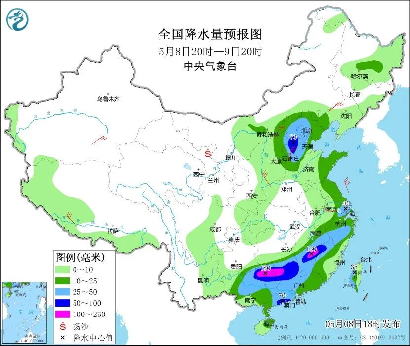 中央气象台8日18时发布暴雨黄色预警和强对流黄色预警:预计8日20时至9日20时,广西北部、广东西部和中北部、江西东部和南部、福建西部、浙江南部、江苏南部以及华北东北部等地部分地区有大到暴雨,其中,广西东北部、江西东部、湖南南部等地部分地区有大暴雨。
