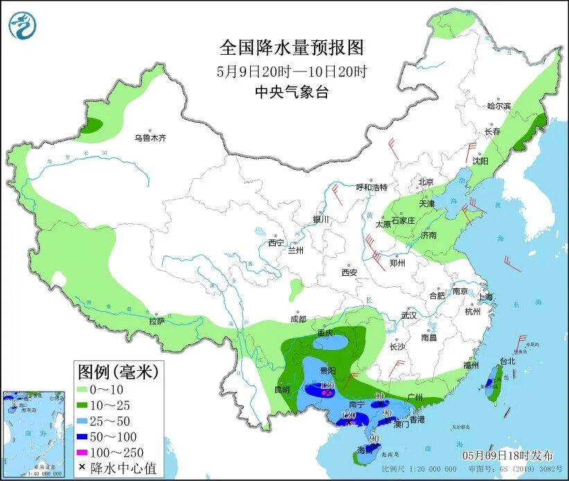 中央气象台预计,9日20时至10日20时,四川盆地南部、贵州大部、云南东部、湖南西部、广西西部和中南部、广东中西部和东南沿海地区、海南岛、台湾岛以及吉林东部等地部分地区有中到大雨,其中,贵州南部、云南西南部、广西西部和中南部、广东西南沿海地区、海南岛北部等地部分地区有暴雨,局地大暴雨。