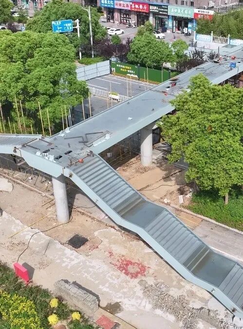 下一步我们就着手雨棚、栏杆的安装,争取在7月初确保这个人行天桥可以通行。