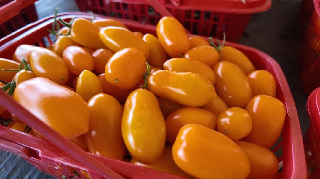 团风初心生态家庭农场负责人 漆晟杰:我们现在的蜂胶小番茄主要是两个品种,一个是红色的圆果品种,第二种是黄色的椭圆果。这种红色的是酸甜口,口感是甜中带着微微的酸;这种黄色的就是纯甜口的番茄。我们的采摘期主要是两季,上半年是5月份开始,到6月底结束,下半年大概是10月份开始,12月底结束。