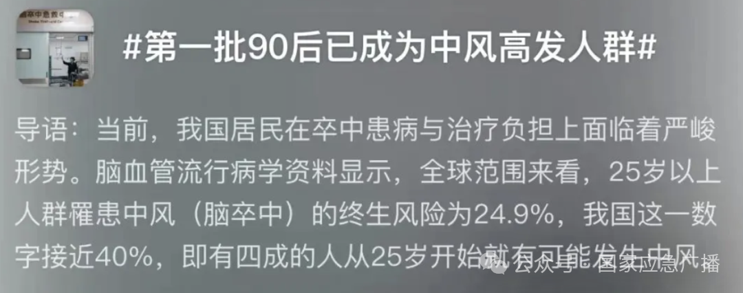 如今,脑卒中已不是“老年病”,全世界25岁以上人群罹患脑卒中的终生风险为24.9%,在我国这个数字接近40%,即有四成人从25岁起就可能发生脑卒中。