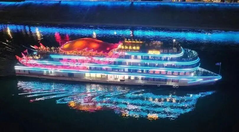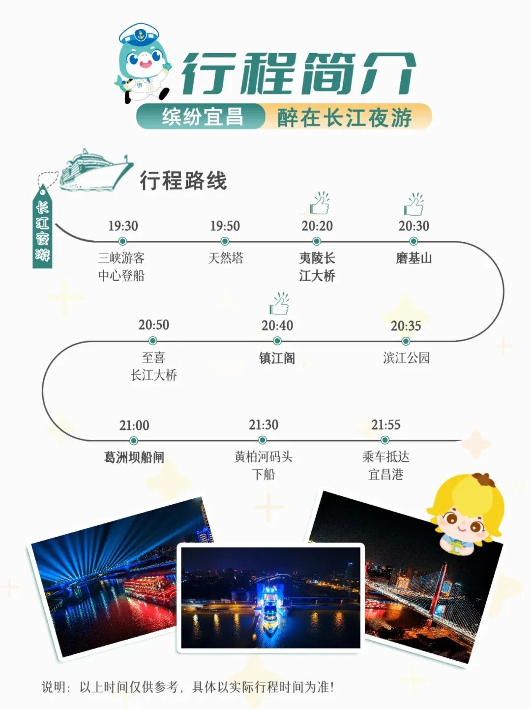 “楚风号”首推“楚风号夜秀”航线,每天20:00从宜昌港九码头启航,可于船舱内观赏演出,同时透过舷窗领略两岸灯火。