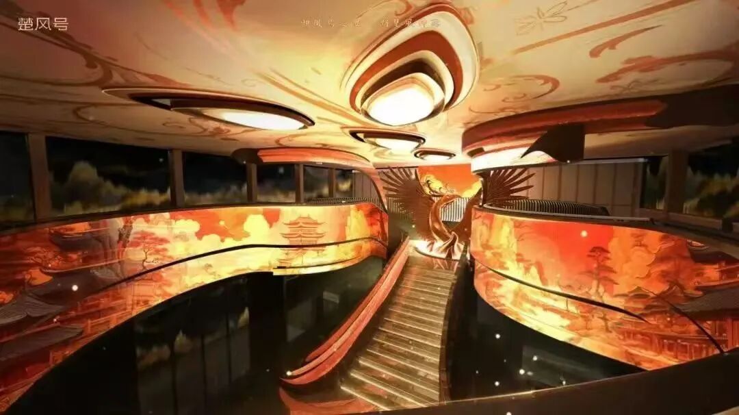 “楚风号”游轮是国内首个沉浸式长江楚韵时空剧场,通过科技活化楚文化,以屈原、昭君、李白三位历史人物为叙事主线,在游轮四层空间打造移动式沉浸剧场。