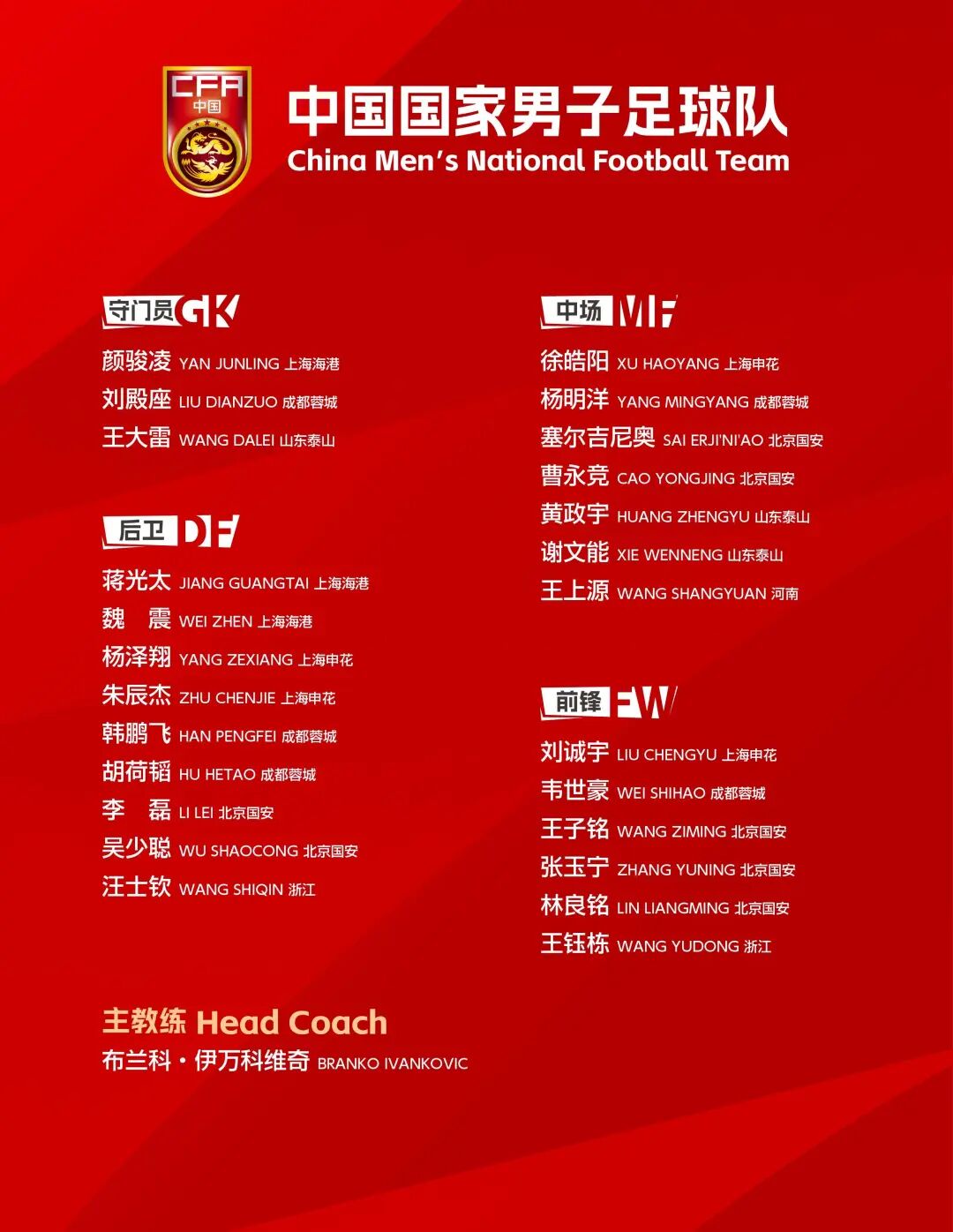 2日,中国男足出征印度尼西亚参加世预赛的25人名单出炉,塞尔吉尼奥、王钰栋、刘诚宇等人入选。北京时间6月5日21:45,中国男足将客场迎战印度尼西亚。滑动查看完整名单↓