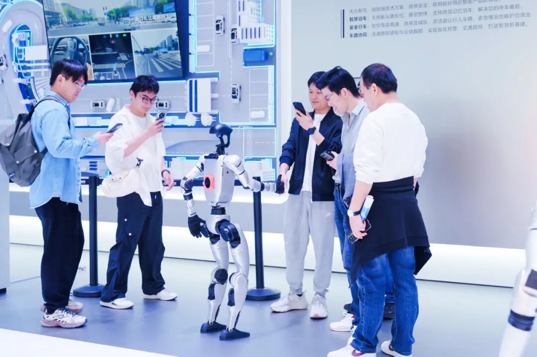 ▲上海车展东风展台人工智能机器人与参观者互动