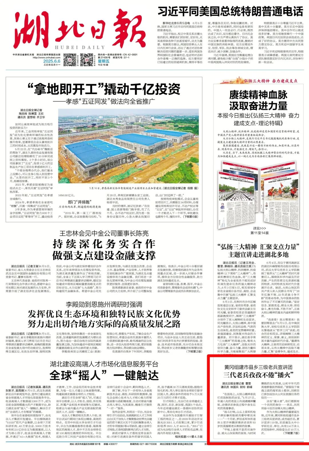 ▲《湖北日报》6月6日头版