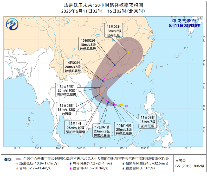 中央气象台11日2时发布台风快讯:南海热带低压的中心11日2时位于距离海南省三沙市(西沙永兴岛)东南方向约210公里的海面上,预计热带低压将以每小时10-15公里的速度向西偏北方向移动,强度逐渐增强。