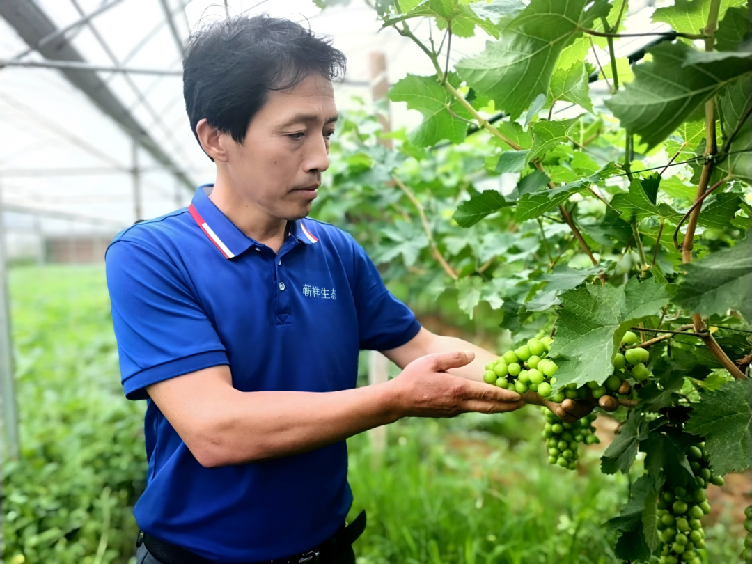 走进张又祥的基地,除了“现代化”,“生态”二字也格外醒目。为了循环利用鸡粪,他将鸡粪集中发酵处理制成有机肥,发展种植业,先后种植过玫瑰花、葡萄等。现有葡萄园5亩,主要种植了阳光玫瑰、夏黑等品种。