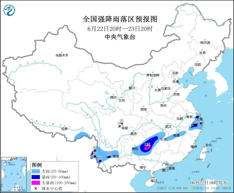中央气象台22日18时继续发布暴雨蓝色预警:预计22日20时至23日20时,江苏东南部、上海、浙江中北部、江西中部、湖南中部和西南部、贵州东南部、广西北部、云南中西部等地部分地区有大到暴雨,其中,湖南西南部、贵州东南部等地局地有大暴雨。