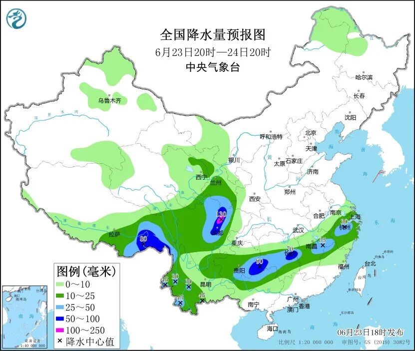 中央气象台23日18时继续发布暴雨蓝色预警,预计23日20时至24日20时,甘肃南部、川西高原东北部、四川盆地西部、西藏东南部、云南西部和南部、贵州东南部、广西北部、湖南中南部、江西中部、浙江中北部等地部分地区有大到暴雨,其中,四川盆地西部等地局地有大暴雨。