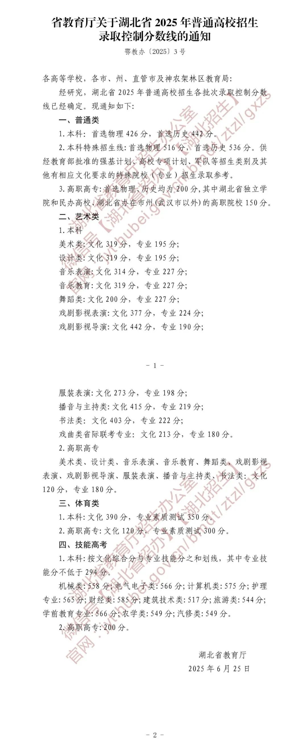 2025年湖北高考分数线公布!