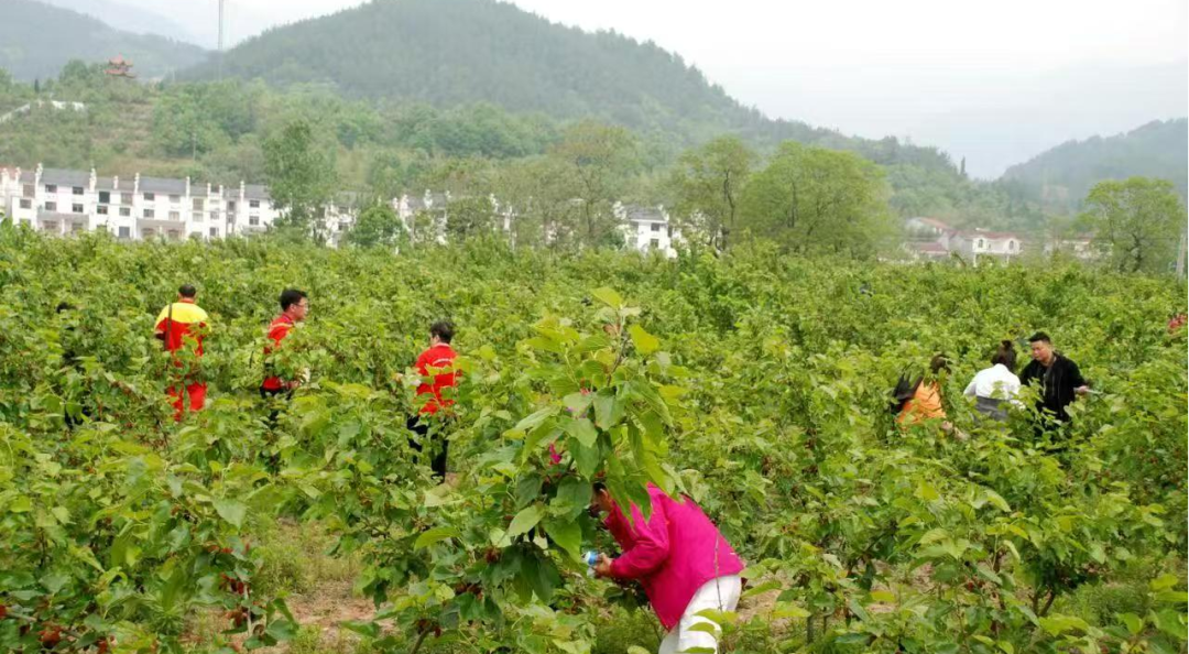 饼子铺村高标准建成200亩无公害茶园、600亩桑叶公园和400亩道地中药材基地,形成了“茶、桑、药”三大特色产业格局。通过“龙头企业+合作社+农户”模式,引进湖北润园春茶叶公司、湖北华林中药材公司等龙头企业,开展茶叶精制、桑蚕和中药材深加工,打造“桑葚膏、桑叶茶”等特色品牌,年产值突破1000万元,带动农户户均增收1100元以上。为拓宽农产品销路,村里建成“红星之家”网络直播间,与中国邮政合作建立村级寄递物流服务站,依托桑叶公园和中药材专业合作社发展电商销售,实现“山货出山”,年线上销售额超1200万元。抢抓英山县全域旅游发展机遇,依托山水资源,打造“饼子铺·后花园漂流”系列景点,建成旅游接待中心,发展农家乐、农家旅馆15家,形成“桑葚采摘、溯溪帐篷、后花园夜漂”三大特色品牌,推出“茶园观光—桑葚采摘—药膳体验”精品旅游线路,年接待游客超万人次,旅游综合收入达450万元。