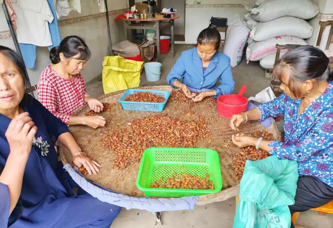 在蕲春狮子镇於冲村柯秋云的家中,几位农妇手指翻飞,饱满红亮的金樱子滚入竹筐——那色泽映着她们的笑脸,也映着柯秋云从漂泊游子到“新农人”的扎根路。