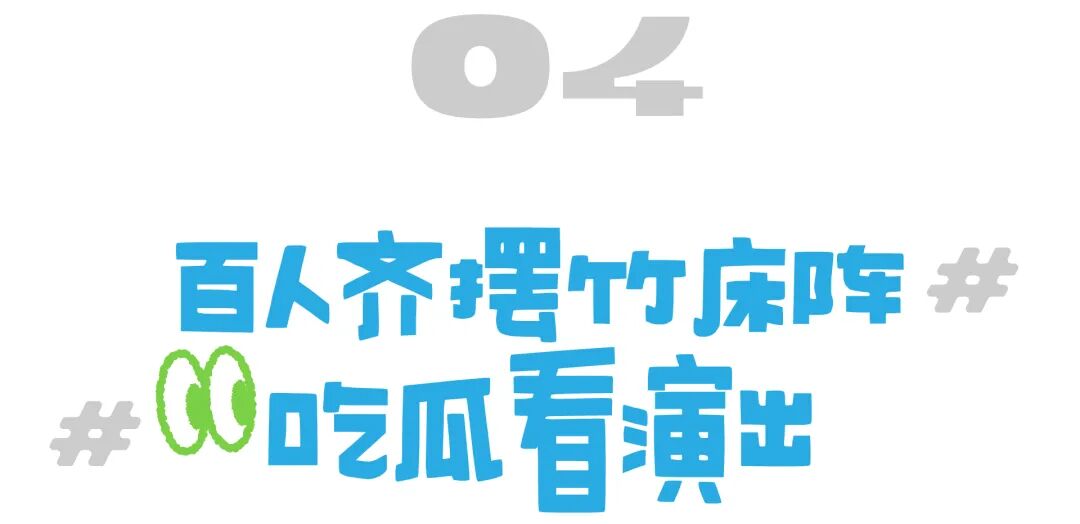 东门外的广场上阵势最大,百余张竹床面向大舞台整齐排开,届时可供数百名游客同时免费乘凉打卡。