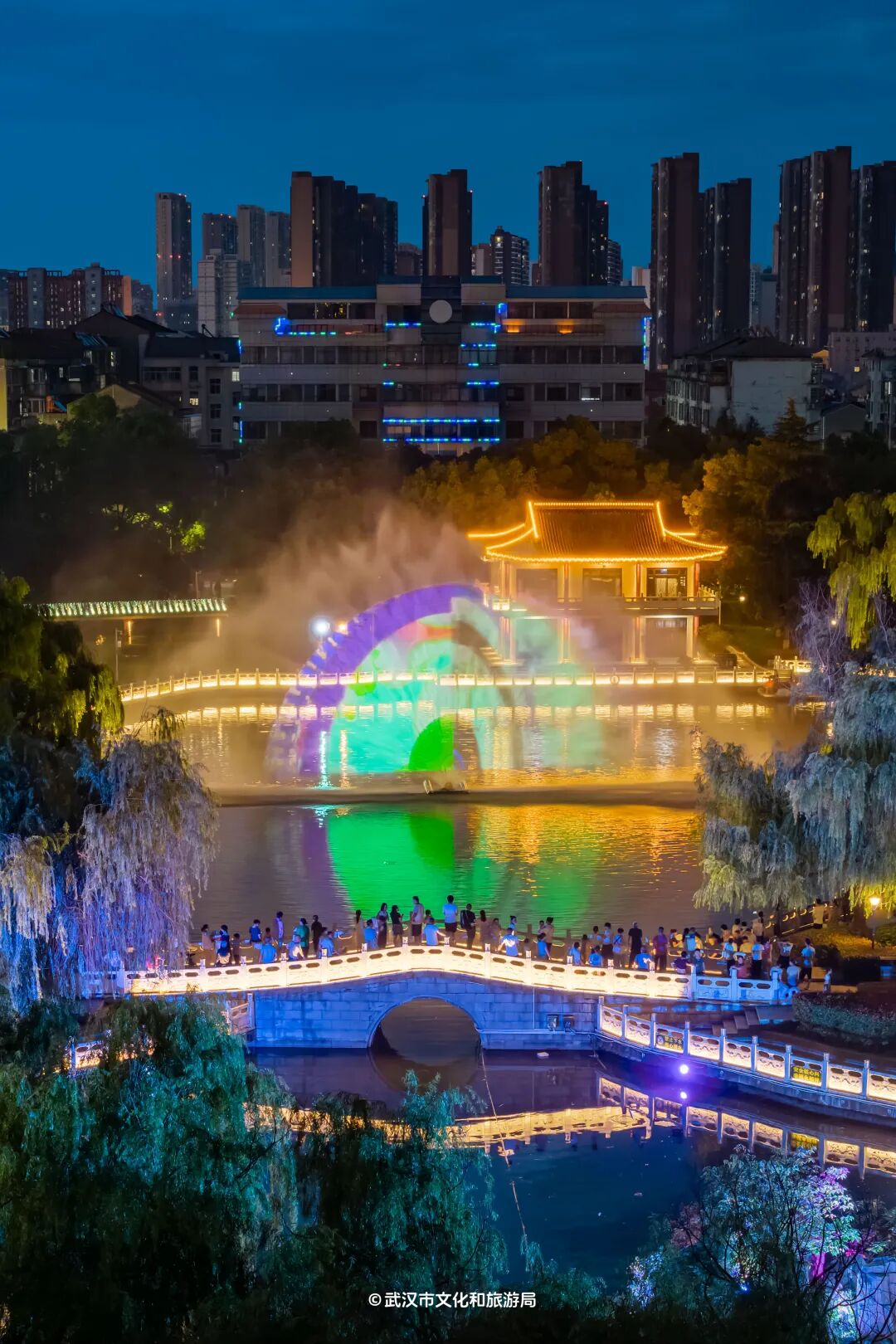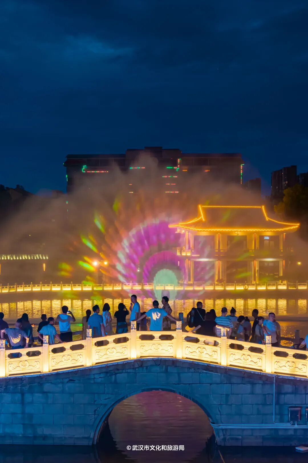 这场科技感十足的“电影”,以湖上的近20米的扇形水雾为幕,用光电投影技术,展现谭派京剧变脸、江夏古瓷窑、造纸工艺等江夏元素,每场持续半小时。