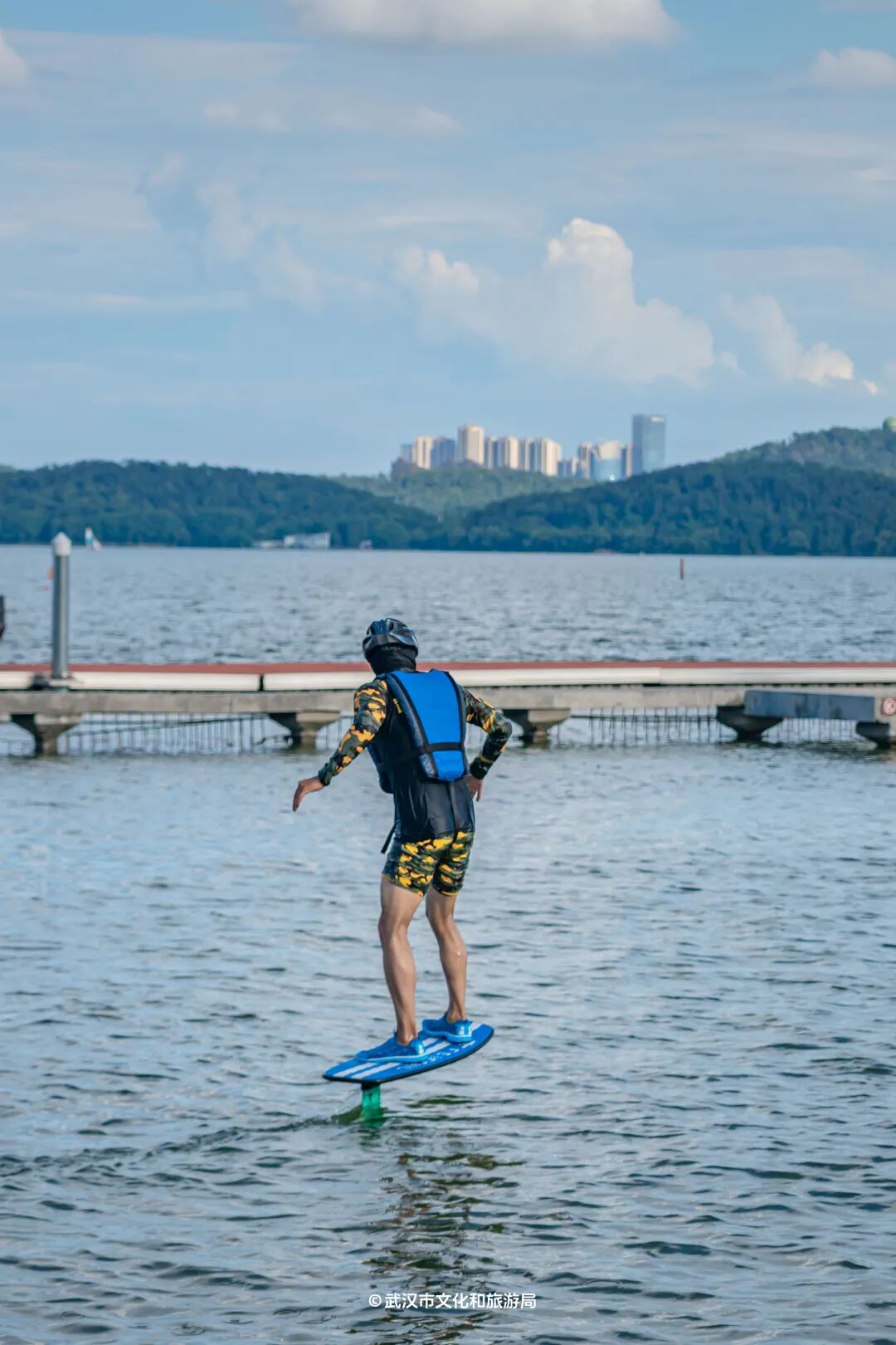 如果想尝鲜,隔壁的听涛水上运动中心可以体验皮划艇、赛艇、卡丁船、电动冲浪板等玩水项目。教练手把手教学,很快就能上手。