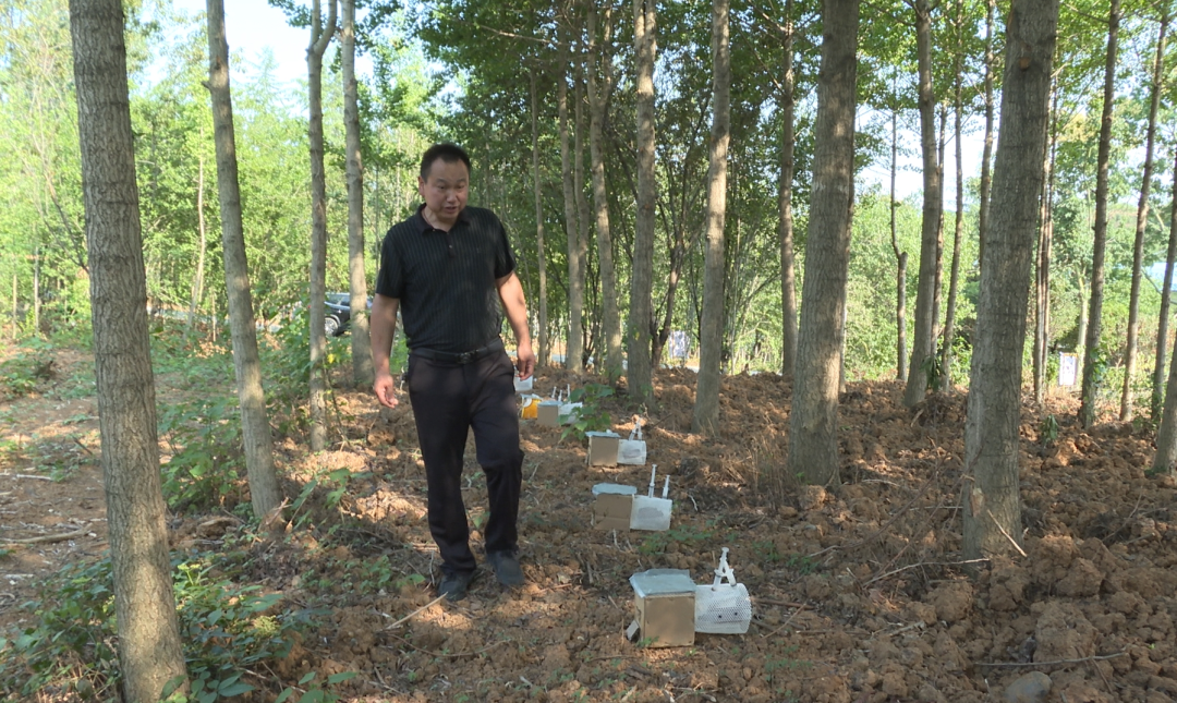 2023年,田辉明选择在高岭村发展特色产业,从清除荆棘密布的山林到改造新厂区,从考察市场到特色种苗培育,一年时间,“沉睡”数年的养猪场萌发了新的生机。如今,园区内标准化的胡蜂培育基地里,一筒筒蜂箱整齐摆放,蜂蛹在蜂筒内不停涌动。田辉明还动员周边的农户也参与到胡蜂养殖的行列中来。田辉明告诉记者,胡蜂适合野外放养,农户只要放养到野外就可以了,不需要投喂食物,也不需要每天去照护。