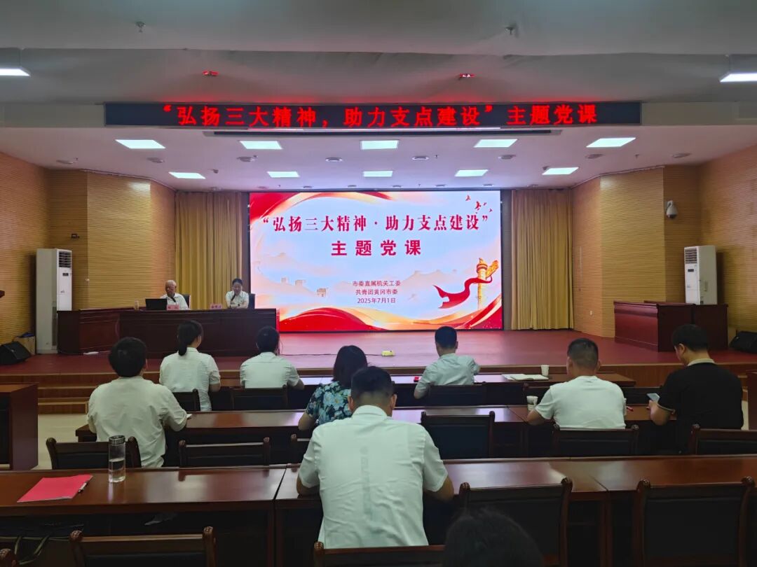为庆祝中国共产党成立104周年,弘扬三大精神,7月1日,市委直属机关工委、共青团黄冈市委联合开展“弘扬三大精神 助力支点建设”主题党课,来自各市直机关的200名青年干部职工参加。
