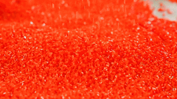 公司总经理孙侠戴上手套,轻轻捧起一把刚刚“诞生”且带着余温比米粒还小的颗粒,在灯光下,这些即将赋能塑料制品的“色彩精灵”闪烁着珍珠般的光泽。