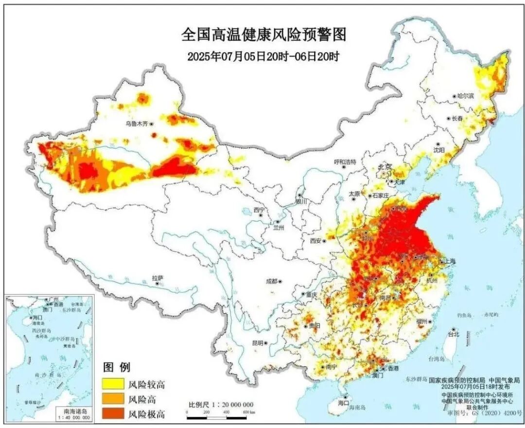 国家疾病预防控制局、中国气象局7月5日18时联合发布高温健康风险预警: