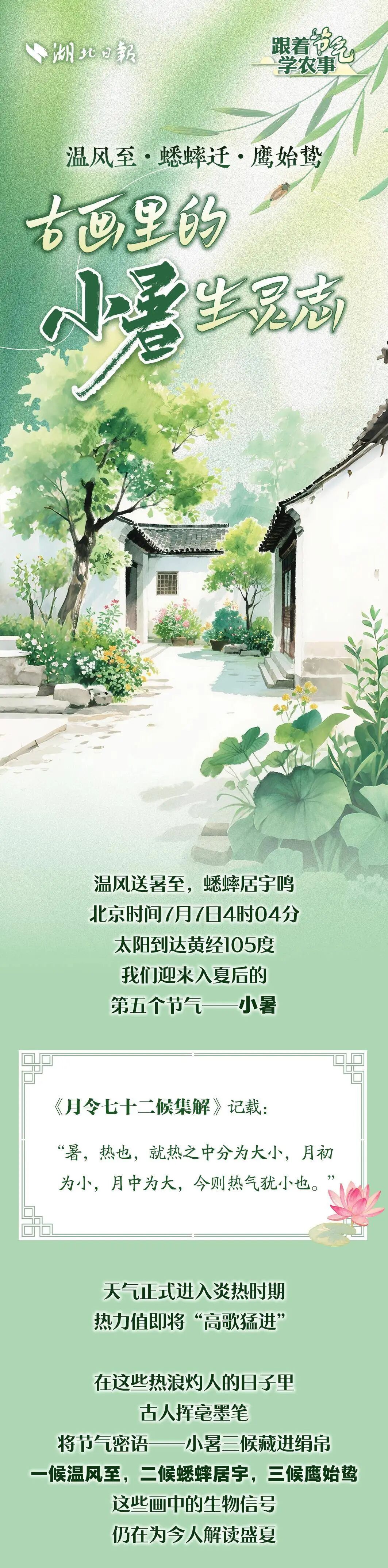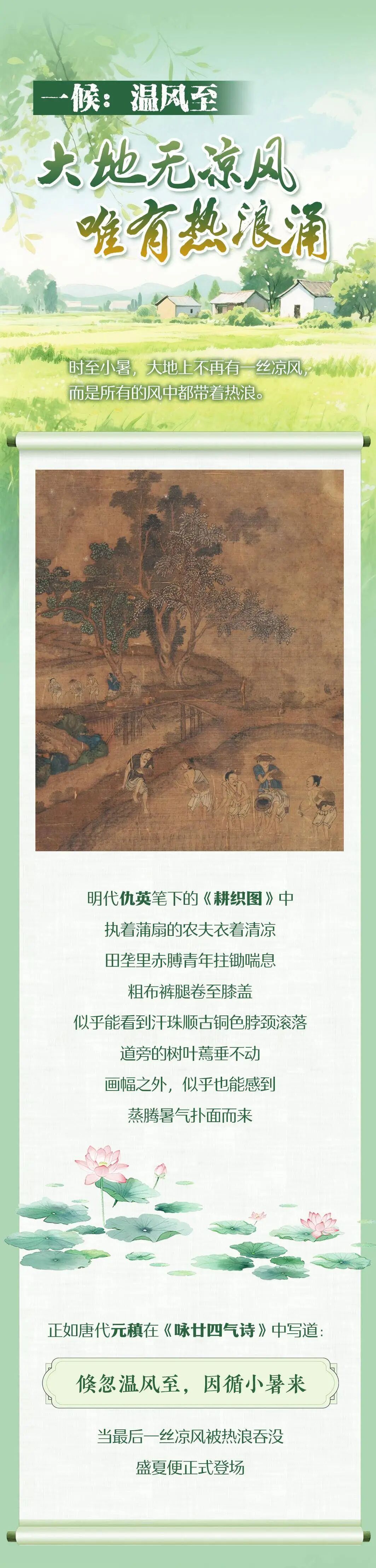 “绿树阴浓夏日长,楼台倒影入池塘。”小暑时节,滚烫而热烈,却又不乏惬意的消夏时光。在这个暑热正盛的时节,无论是吃藕食新,还是看流萤飞舞、闻风中荷香,愿大家都能通过自己喜欢的方式,觅得一方清凉。