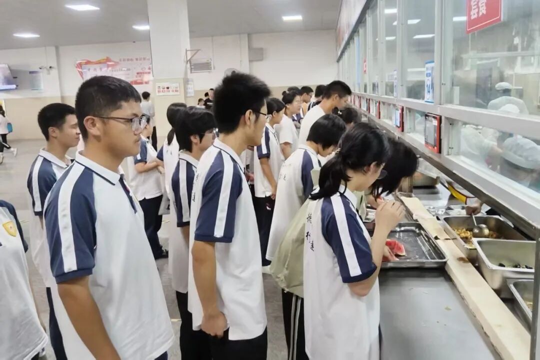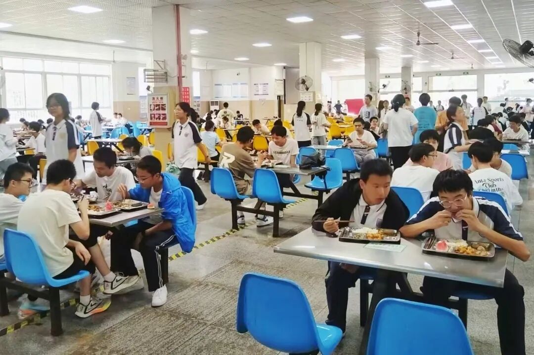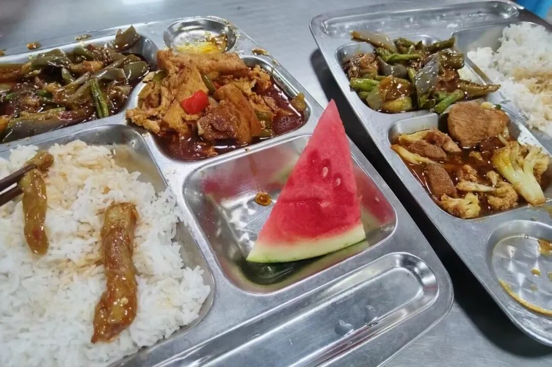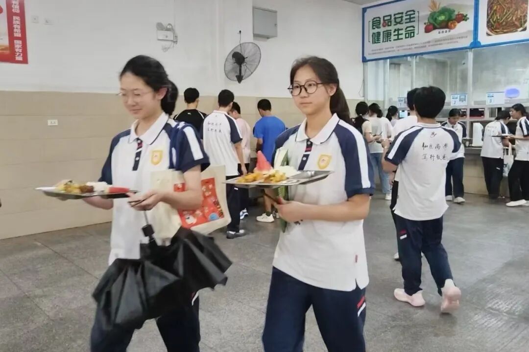 西兰花、豇豆茄子、时令水果西瓜……7月5日中午,在黄冈中学考点食堂,端着厨房阿姨递过来的免费午餐,刚参加完普通高中学业水平合格性考试的学生钟悦心里别提有多开心了。