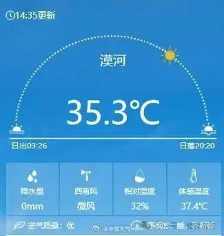 1983年出生的薛先生是漠河北极村本地人,几年前他开始在当地经营一家有5间客房的民宿。在他的印象中,漠河夏天最热的时候也很少超过30℃,而且早晚气温会更低。但是今年,漠河却出现了几次35℃的高温天气。