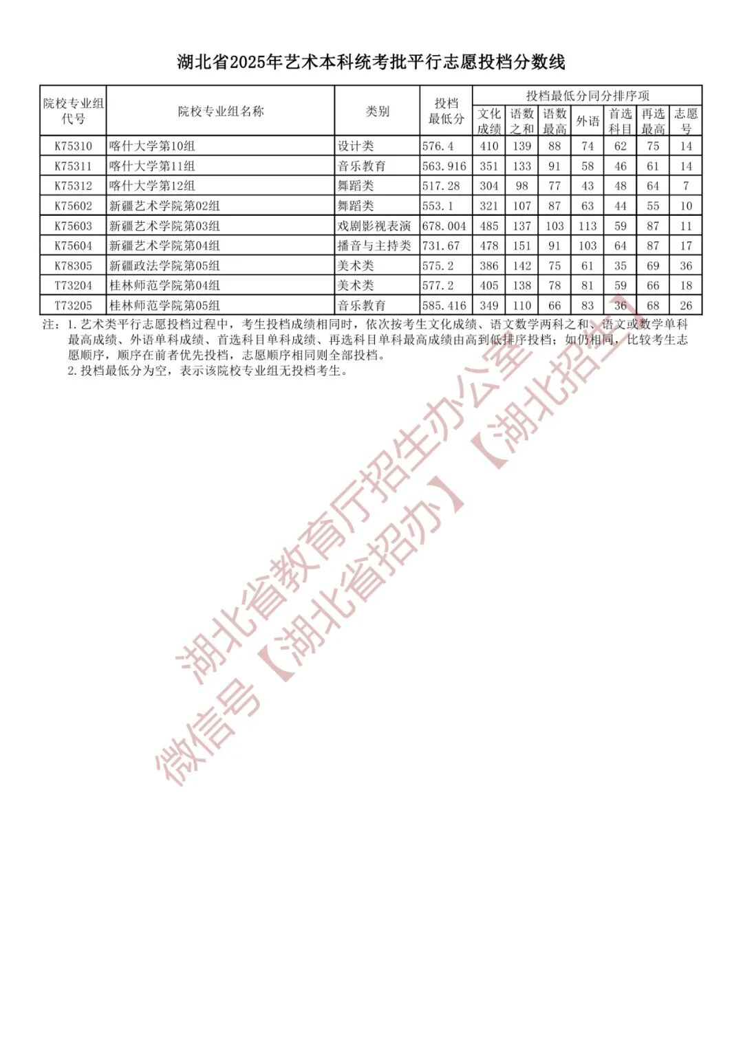 湖北省2025年本科提前批(首选历史)平行志愿投档分数线 湖北省2025年本科提前批(首选物理)平行志愿投档分数线 湖北省2025年体育本科批平行志愿投档分数线 湖北省2025年艺术本科统考批平行志愿投档分数线
