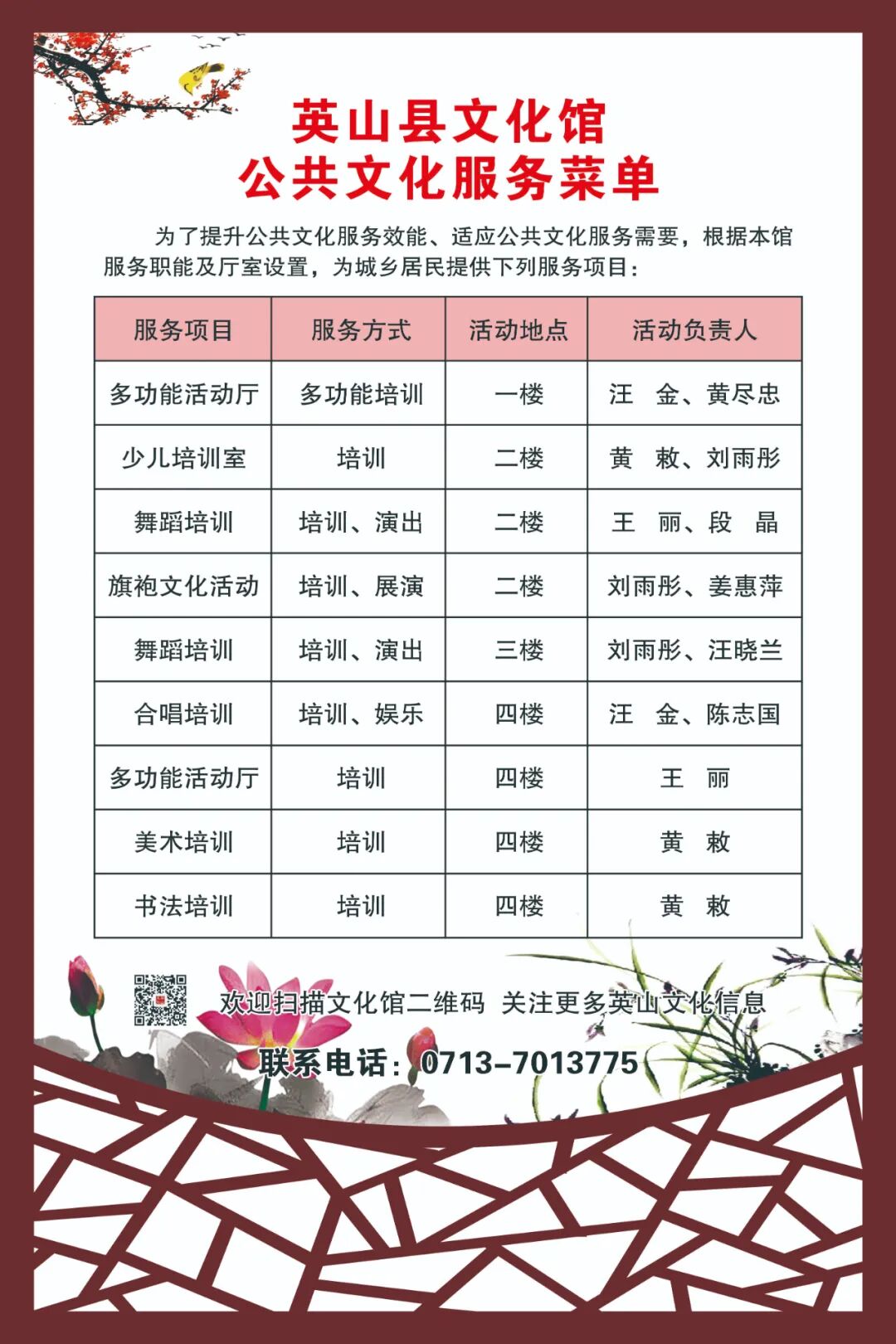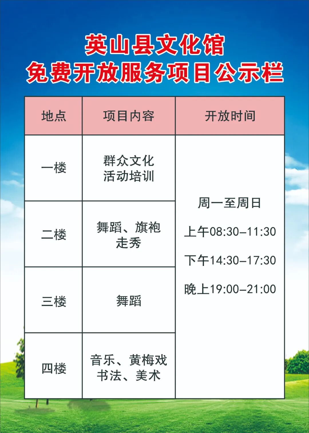 英山县文化馆免费开放公示