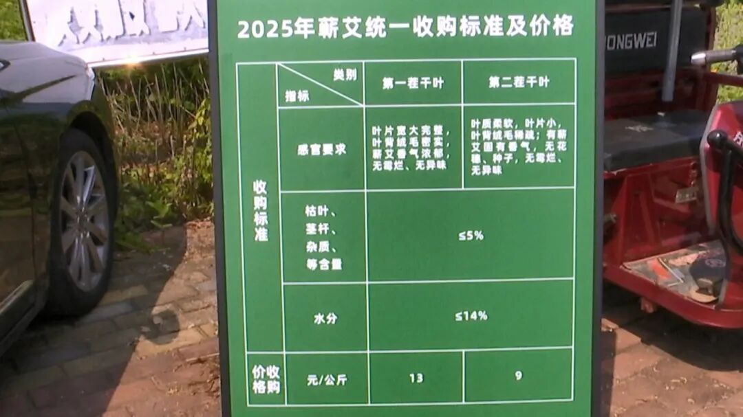 这份“定心丸”的力量,正实实在在地转化为田间地头的笑容与干劲。在蕲州镇韦庄村,清晨的临时收购点排起了长队。70岁的老艾农戈传高看着自家艾叶变成现金,乐开了花:“去年拉到别的地方卖6块一斤,今年6块5,高5角,又方便!明年我还想发展20亩,一茬艾卖得了一万多!”村干部张常林走村入户,确保政策人人知晓、质量户户把关:“我们在政府13块钱一公斤的收购价下,到每家每户去宣传,要保证质量。到村里来统一收购,保证农户的利益不受损。”