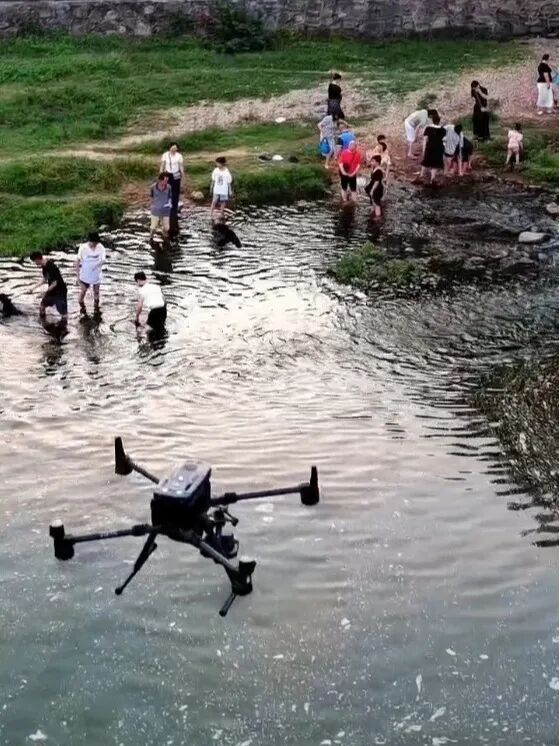“夏日炎炎水清凉,危险藏在水中央;游泳戏水好危险,安全时刻要记牢。儿童监护靠家长,预防溺水重在防;小孩别去河边逛,没有大人守身旁……”在麻城市重点水域上空,市应急管理局的一架应急救援无人机在空中循环播放着防溺水安全知识。