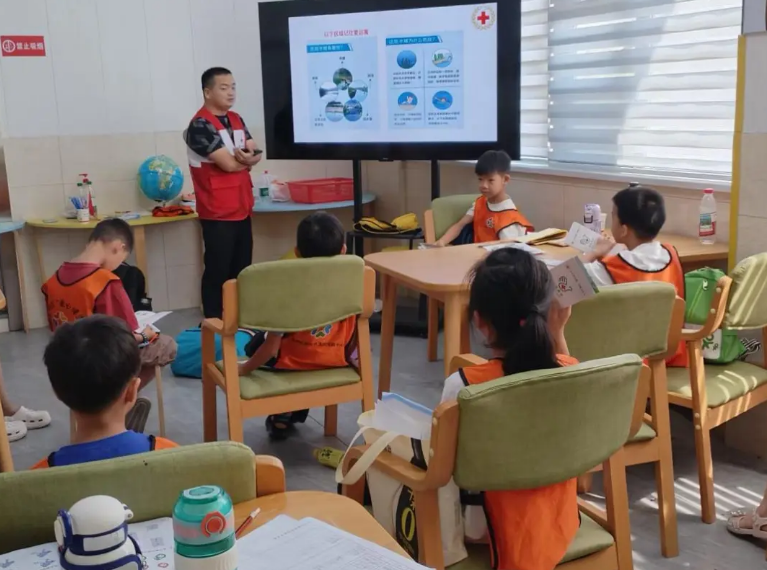 黄州区志愿服务队在社区爱心课堂开设防溺水安全教育课,课堂上,以游泳为话题导入防溺水宣传教育“六不”,采用现场模拟的方式向小朋友们演示了溺水的应急救护方法。