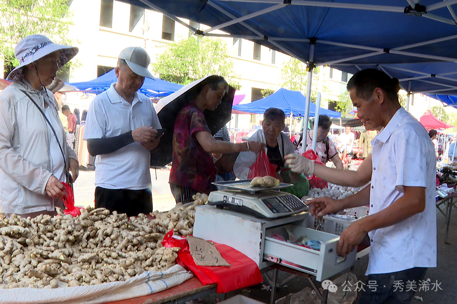 顺着人流往里走,安徽商贩张振杰的小黄姜摊位前也围了不少顾客。他带来的安徽香姜带着泥土清香,成了集市上的抢手货。像这样跨省而来的商贩还有不少,他们的到来让汪岗集市的商品更丰富,也让这片乡土集市有了更广阔的辐射力。摊贩 张振杰:今天生意还可以。这是安徽小黄姜,农产品小姜、香姜,我们去收购的,过来卖。