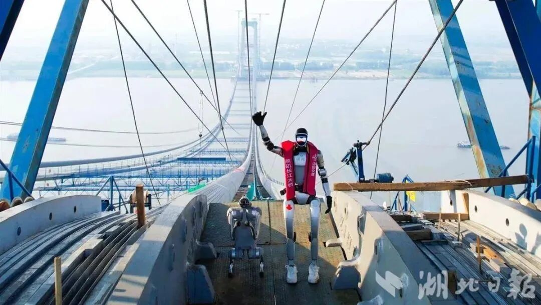 燕矶长江大桥上演人形机器人“空中走钢丝”