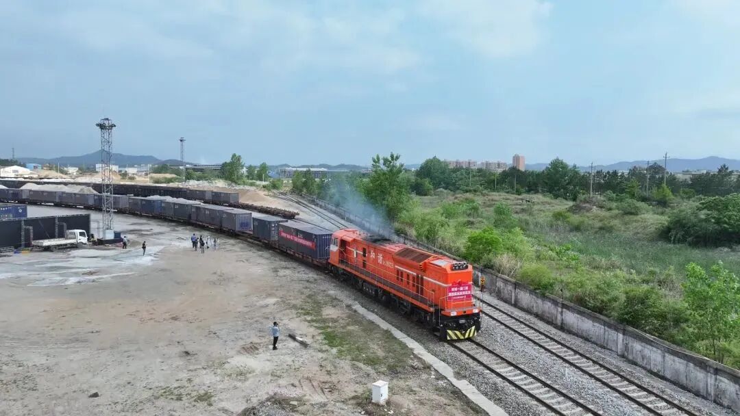 5月21日上午,随着鸣笛声划破长空,首列装载花岗岩的铁路货运专列从湖北麻城铁路场站缓缓驶出,这些“麻城造”石材通过铁路直达厦门港,随后无缝转接国际货轮,运往韩国仁川港,开拓石材出海“黄金通道”。