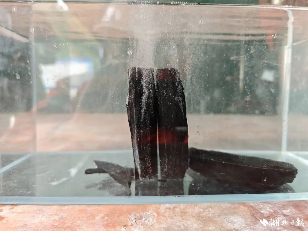 大隆组黑色硅质页岩浸水实验起泡剧烈。