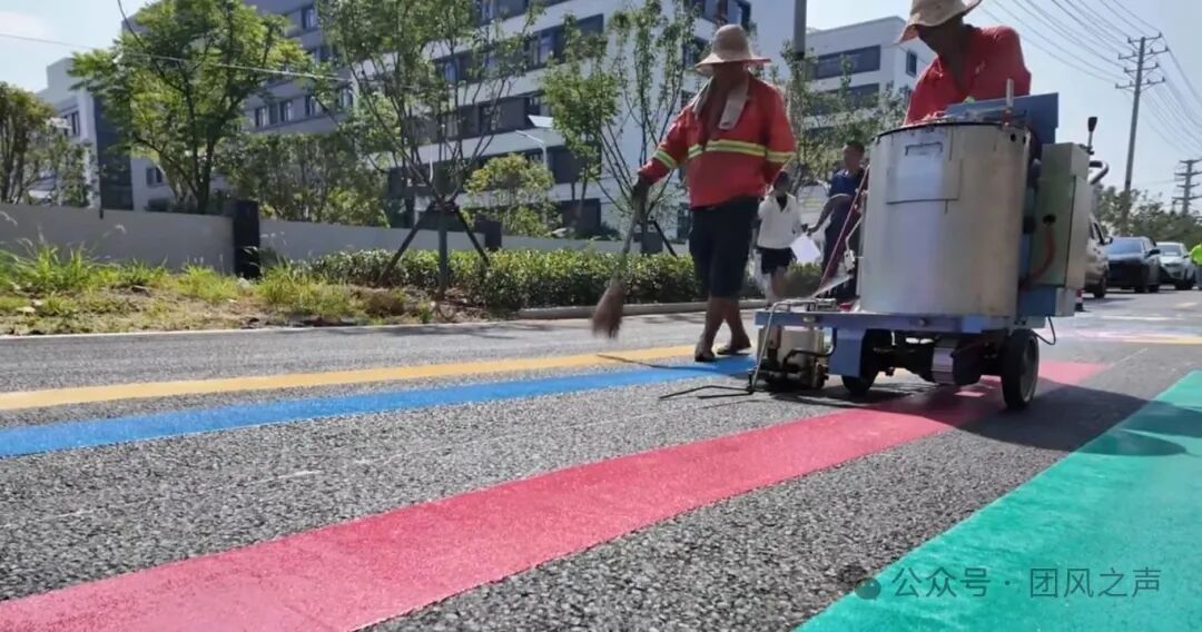 为确保工程如期完工,施工方科学组织,抢抓工期。在团风县通源路桥工程有限公司负责的路段,工人们正顶着高温进行路肩整治、路域环境优化及标志标线喷涂作业。