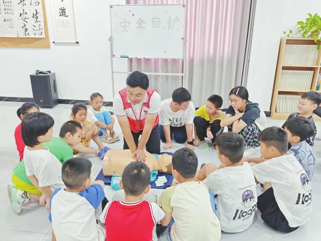 全市所有托管班将防溺水作为“开班第一课”,通过情景模拟、急救演练、每日安全主题更新(如食品安全、交通安全),筑牢生命防线。刊江街道梅园社区、万丈湖街道新港社区等托管点创新“理论+实践+艺术”三维安全教育模式,确保课程生动有效。