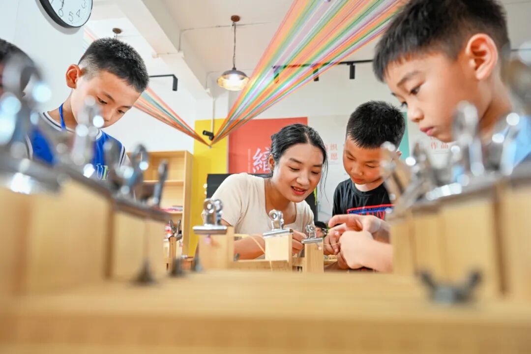 在新的中心,孩子们被分成7个年级,在专职教师和大学生志愿者辅导下,开展手工、绘画、礼仪、实验、烹饪、音乐、球类等多项知识与技能的学习,确保孩子不仅能完成好暑期作业,还能对兴趣爱好进行拓展。
