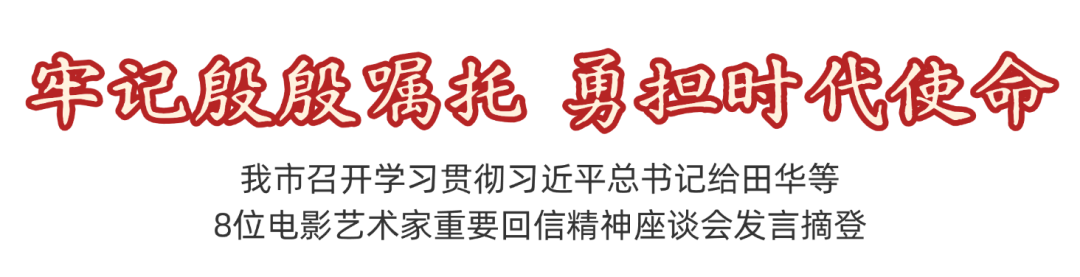 编者按:7月23日,我市召开学习贯彻习近平总书记给田华等8位电影艺术家重要回信精神座谈会。强调要以习近平总书记重要回信精神为根本遵循,坚定文化自信,扎根生活、服务人民、讴歌时代,将学习成果转化为推动文艺繁荣发展的实际行动。立足黄冈丰富的文化资源,全力推动文艺创作迈向新高度,打造新时代黄冈文艺的新高峰,为地方文化建设与发展贡献力量。会上, 7名代表汇报了学习心得,现予以摘登。