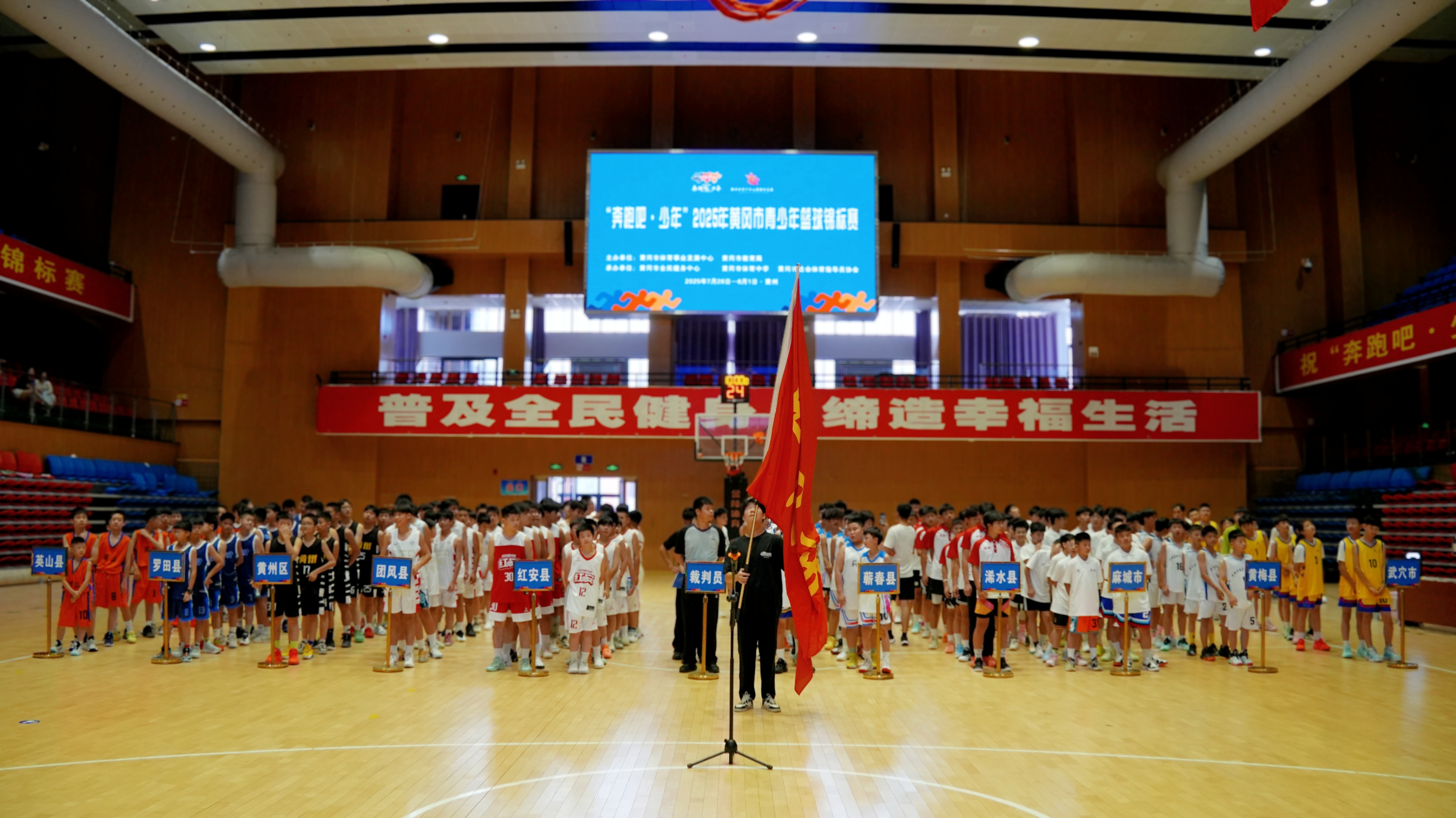 7月28日,黄州体育馆内热血沸腾,“奔跑吧·少年”2025年黄冈市青少年篮球锦标赛在此激情开赛。本次赛事由黄冈市体育事业发展中心与黄冈市教育局联合主办,黄冈市全民健身中心、黄冈市体育中学共同承办,旨在贯彻落实国家体育总局振兴“三大球”有关精神与培养篮球运动后备人才培养。