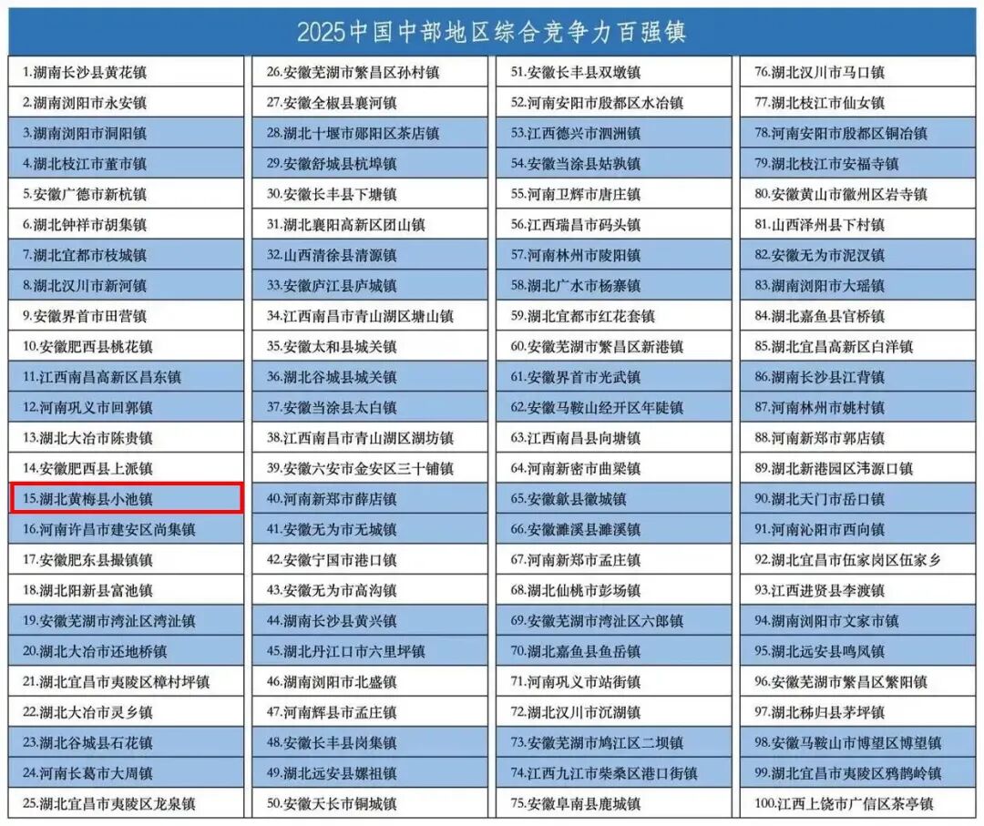 此次“中部百强镇”评比是从