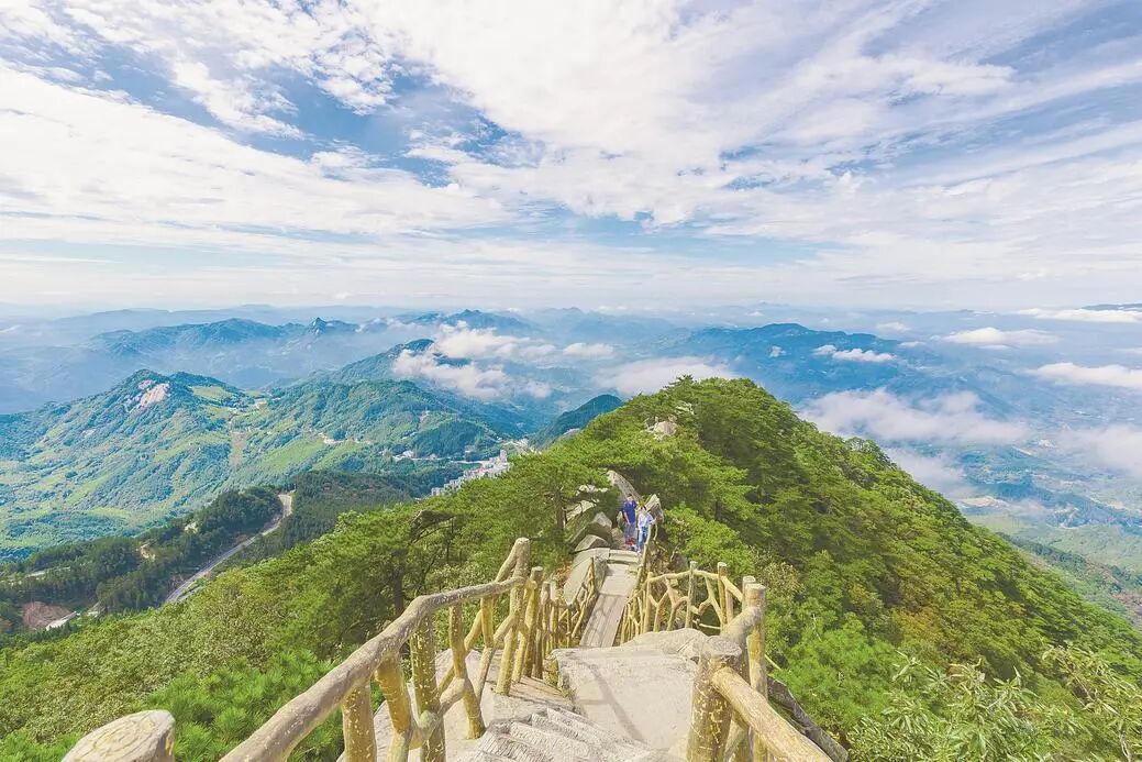 特色:最高海拔1729.13米,98%的森林像撑了把巨无霸遮阳伞,负氧离子多到让你醉氧!属北亚热温暖湿润季节气候,常年降雨量1350mm,空气清新,气候宜人,空气中负氧离子含量高达120000个/cm3,是“人间仙境”实锤。