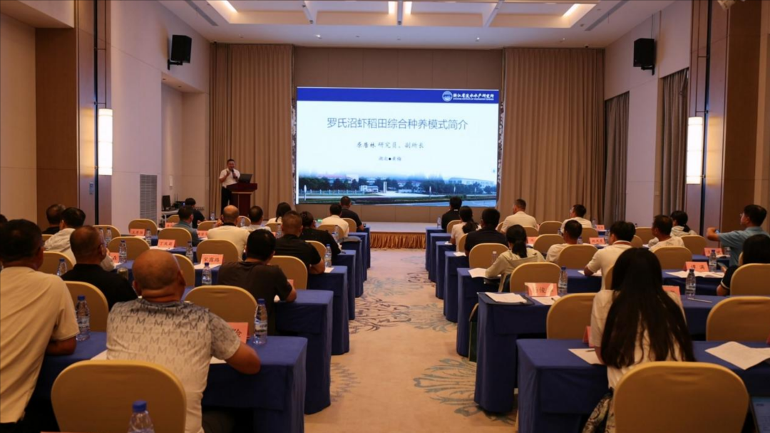 在随后的培训会上,多位专家分享了前沿技术和经验。湖北省农业科学院粮食作物研究所副研究员汪本福详细解读了《稻虾共作模式水稻单产提升栽培技术》,华中农业大学副教授江洋重点介绍了《稻鸭虾“双不双精准”绿色种养技术》。浙江省淡水水产研究所研究员原居林则带来了“稻-小龙虾-罗氏沼虾”轮作模式的宝贵经验,为湖北稻田综合种养提供了新思路。